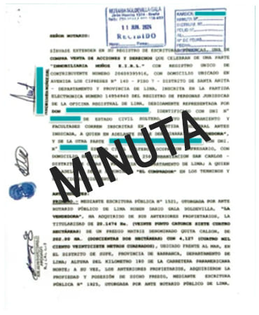 Plano del terreno con Memoria descriptiva Independizado, Contrato de compra-venta (Minuta legal), Escritura Pública inscrito en SUNARP y Registro Municipal (Autovalúo).